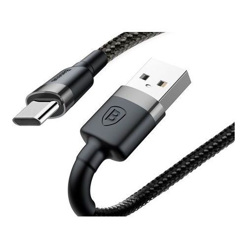 Кабель USB Type-C 2.0 m Baseus Cafule (CATKLF-CG1) сіро-чорний (блістер) (USB Type-AM-/USB Type-C, вилка-вилка, Підтримка USB: 2.0, Форма кабелю: круглий, Матеріал: нейлонове обплетення, Максимальна сила струму: 3A, захист від перелому, ремінь на липучці)