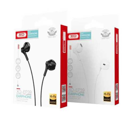 XO EP39 Black (герметичні ("затички") закриті, дротові 3.5 mm mini-jack, 20000 Hz, мікрофон , довжина кабеля: 1.2 m)