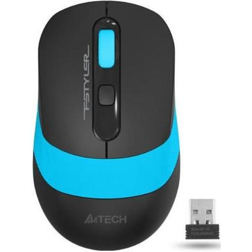 Миша A4tech FG10 Blue. Основний колір: Синій. Максимальна роздільна здатність миші: 2000. Мережеві інтерфейси: Радіо 2.4 ГГц. Тип елемента живлення: AA (R6, 316, «пальчик»). Радіус дії: 15м. Кількість клавіш: 4.